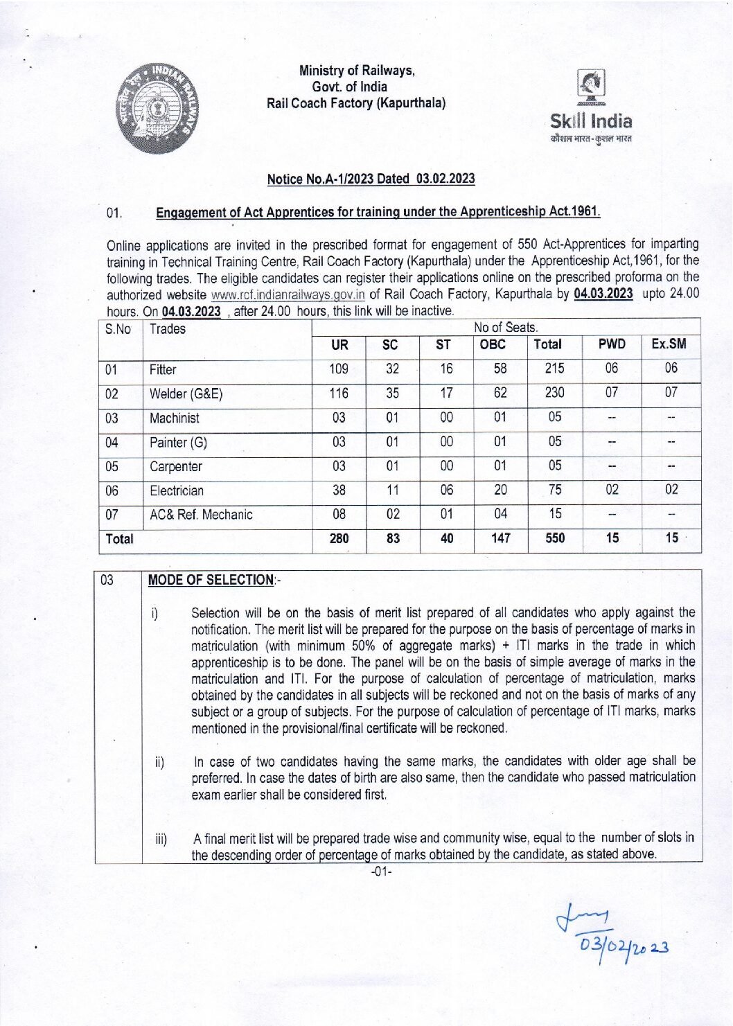 ऑफिशियल नोटिफिकेशन : डाउनलोड करें