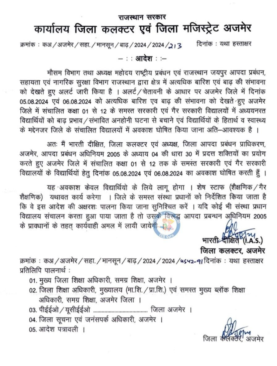 अजमेर जिला स्कूल छुट्टी नोटिस