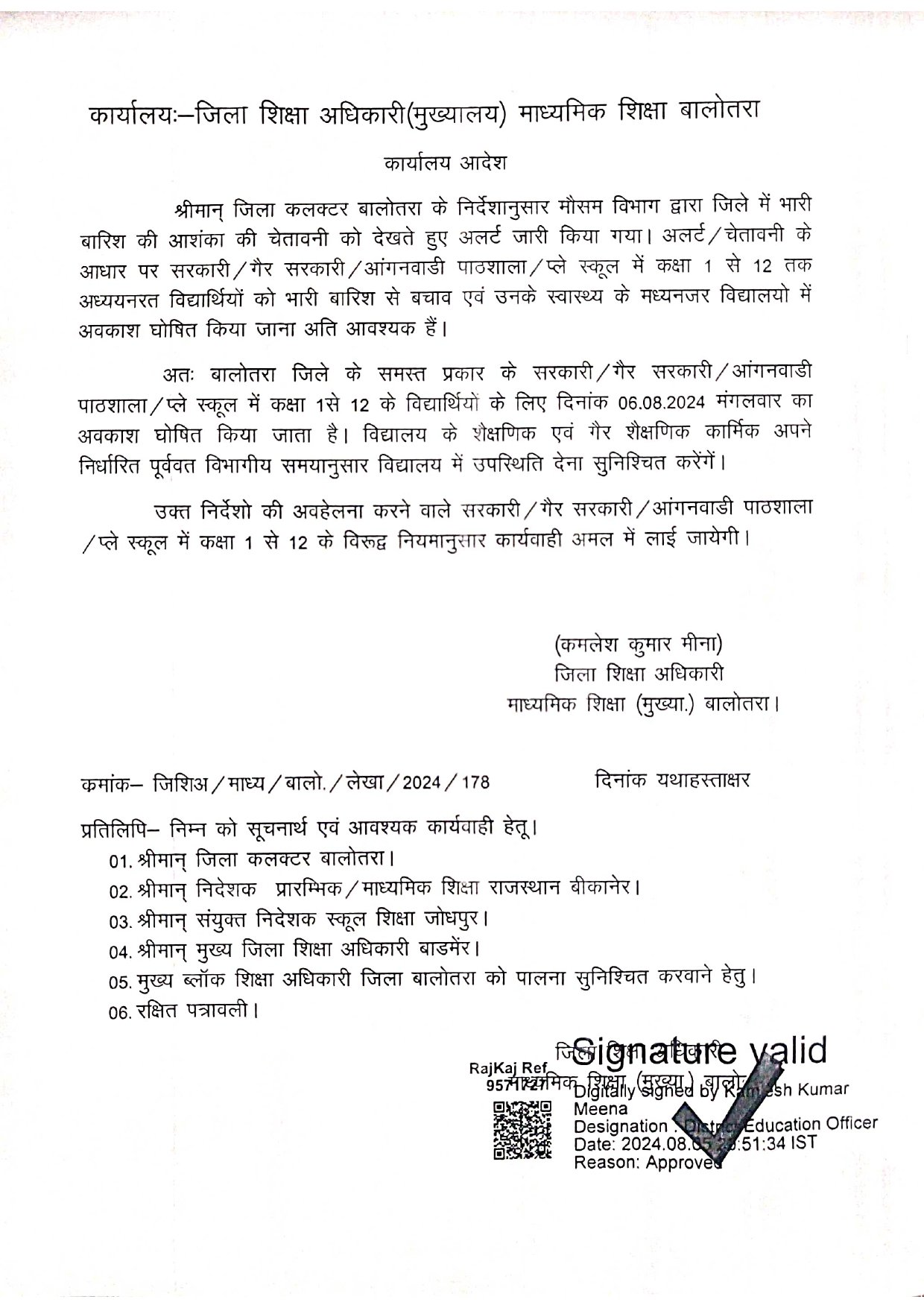 बालोतरा जिला स्कूल छुट्टी नोटिस