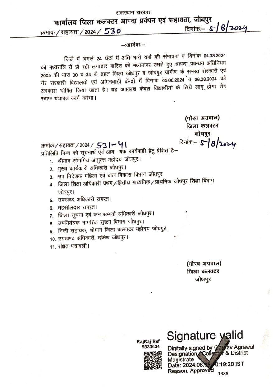 जोधपुर जिला स्कूल छुट्टी नोटिस