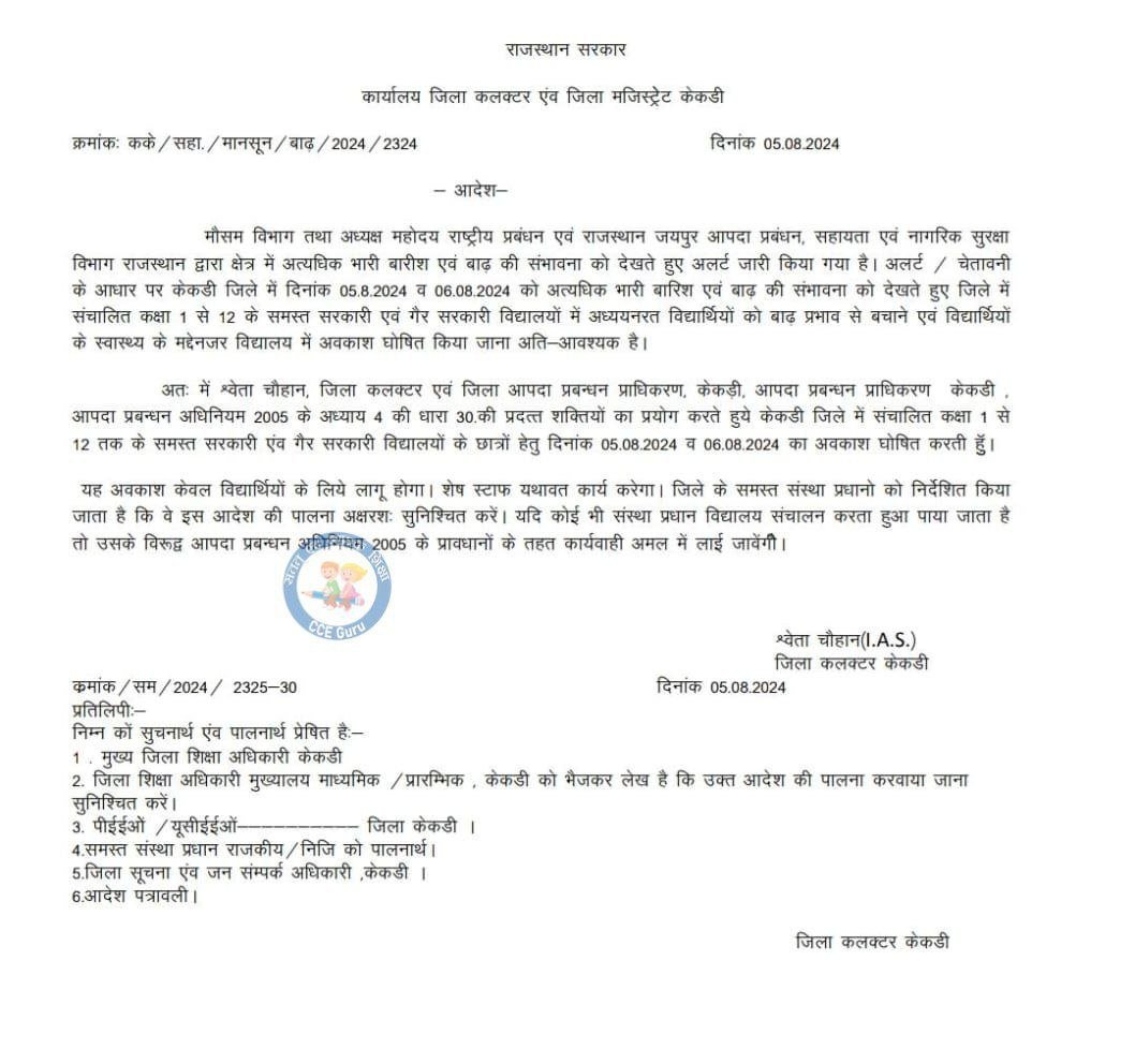 केकड़ी जिला स्कूल छुट्टी नोटिस
