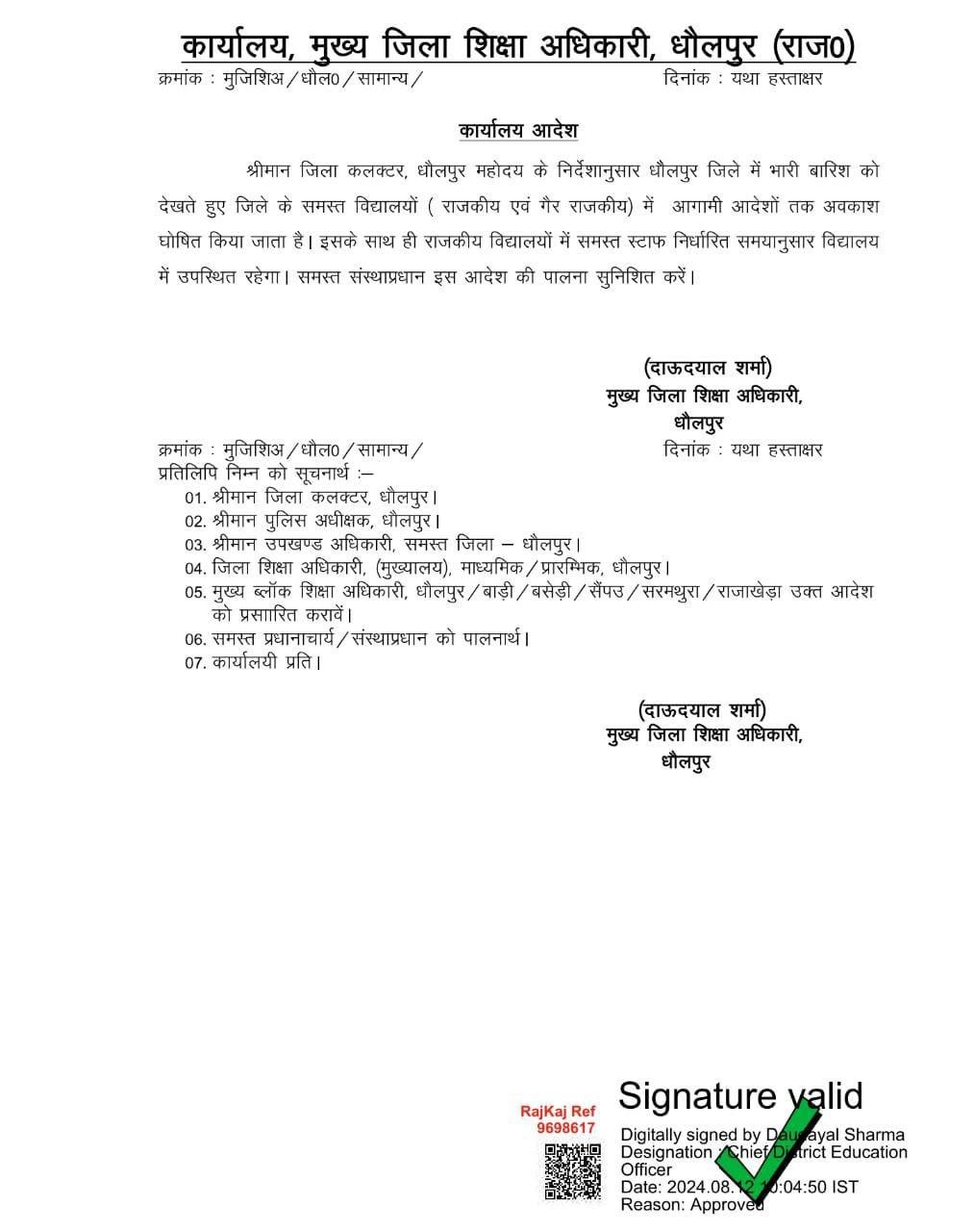 धौलपुर जिला स्कूल छुट्टी नोटिस