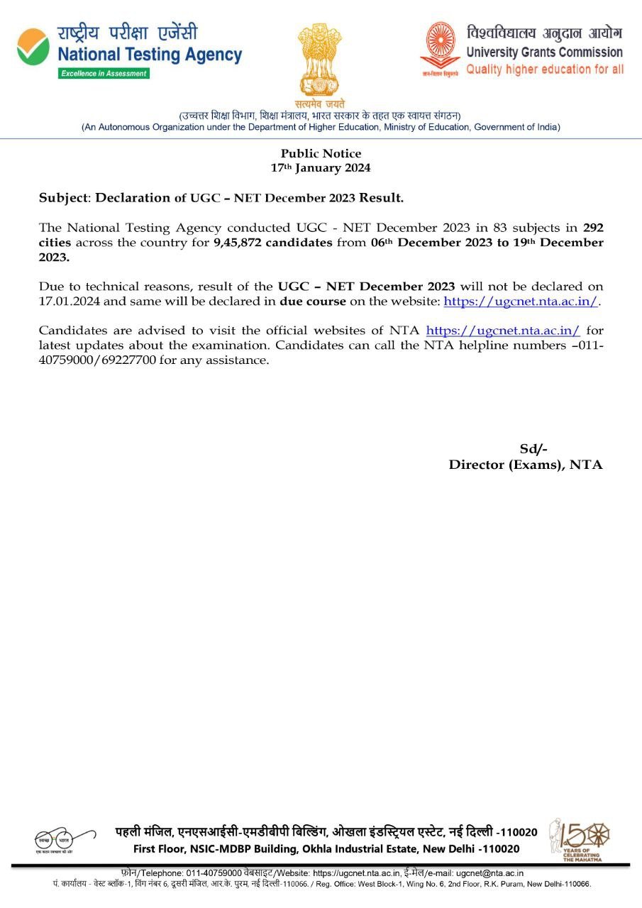 UGC NET Result 2024 has been declared on 19 January 2024.